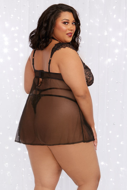 Plus Size Velvet and Lace Harness Babydoll