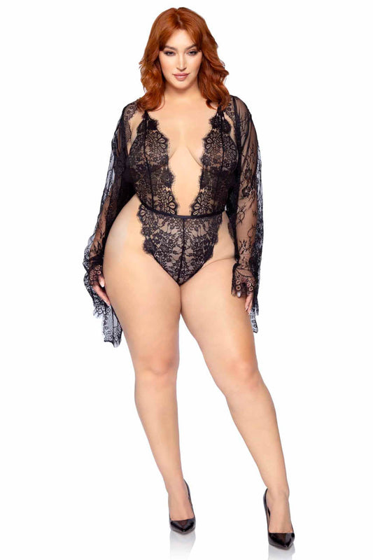 SAVE 30%Plus Size Lace Teddy and Robe Set