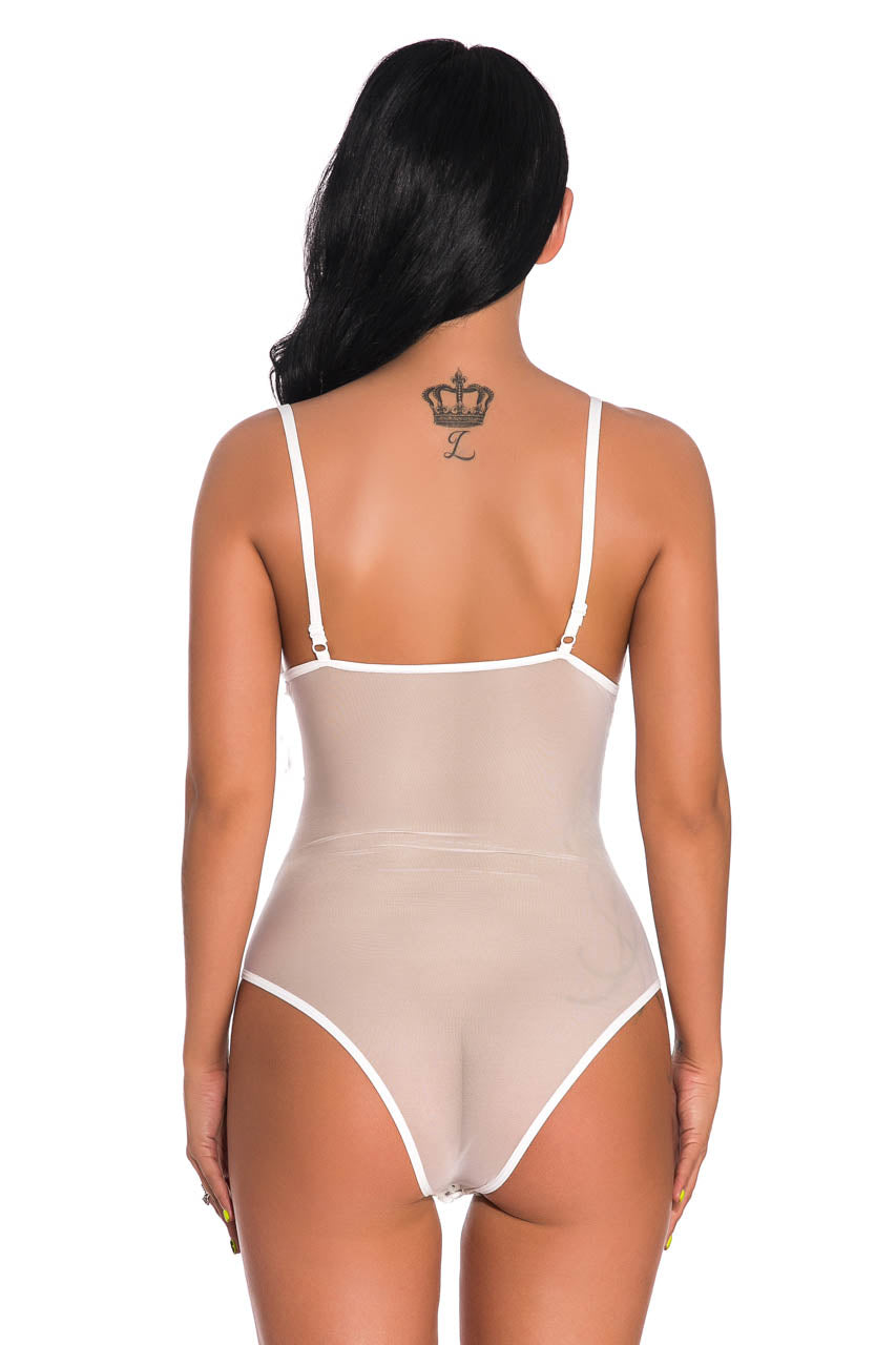 This lucky lace teddy lingerie features a low cut bust with scalloped lace trim, mesh and lace inlingerie sets, spaghetti straps, and a cheeky cut back. * Runs Small